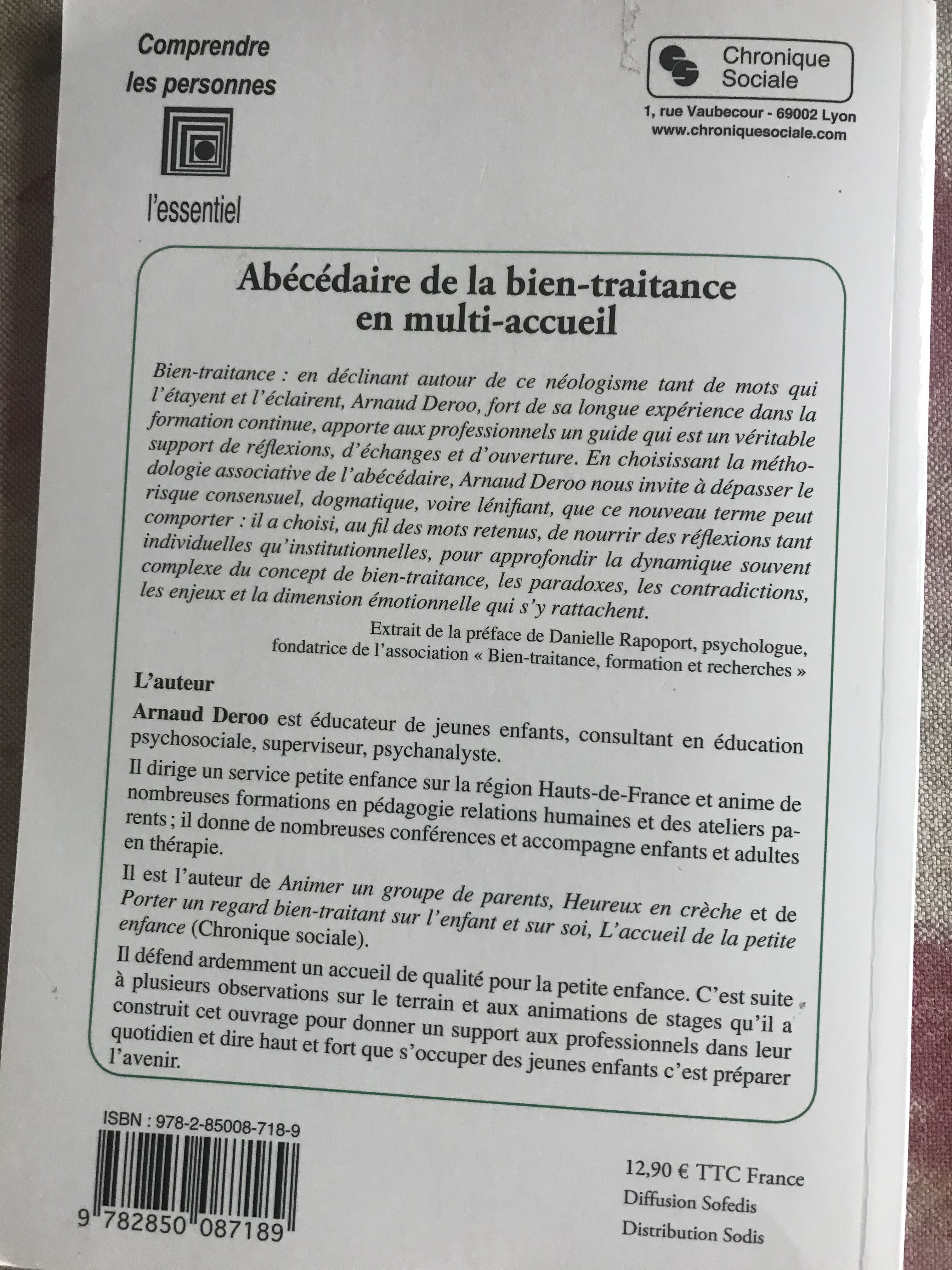 Abécédaire de la bien-traitance en multi-accueil par admin | Nov 2, 2019 | BiblioMot', Livres | 0 commentaires https://livre.fnac.com/a2233277/Arnaud-Deroo-Abecedaire-de-la-bien-traitance-en-multi-accueil-guide-pratique Poster le commentaire Annuler la réponseVotre adresse e-mail ne sera pas publiée. Les champs obligatoires sont indiqués avec *Commentaire * Nom * E-mail * Site web Enregistrer mon nom, mon e-mail et mon site dans le navigateur pour mon prochain commentaire. Oui, ajoutez-moi à votre liste de diffusion.