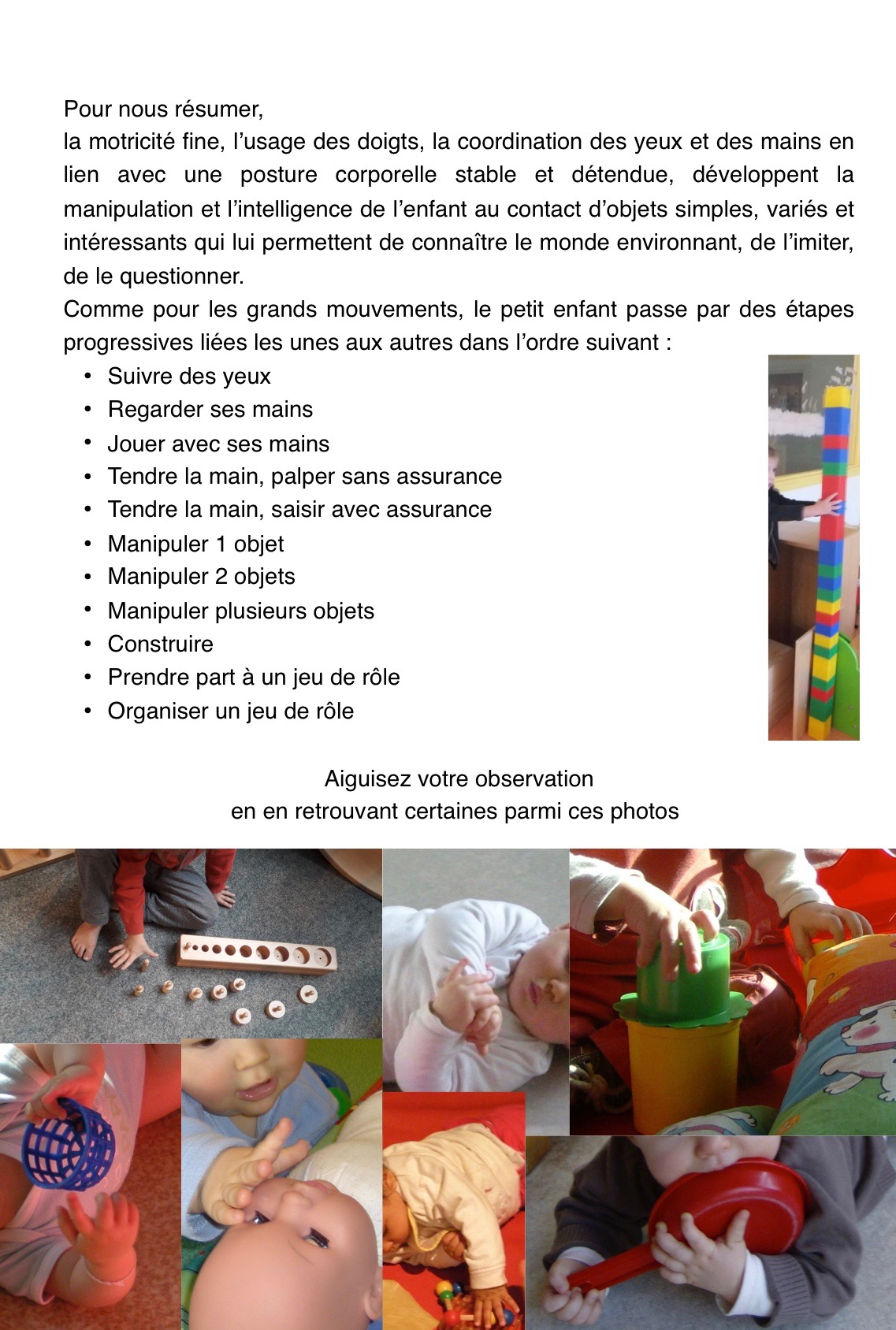Le petit enfant « aiguise son œil et sa motricité fine ».