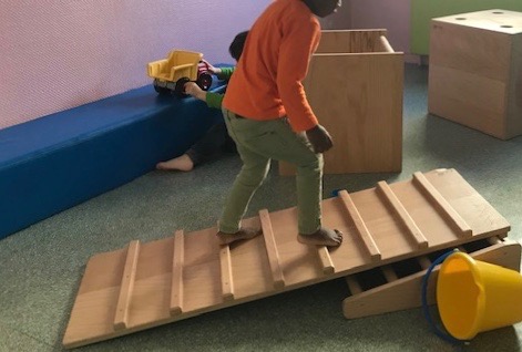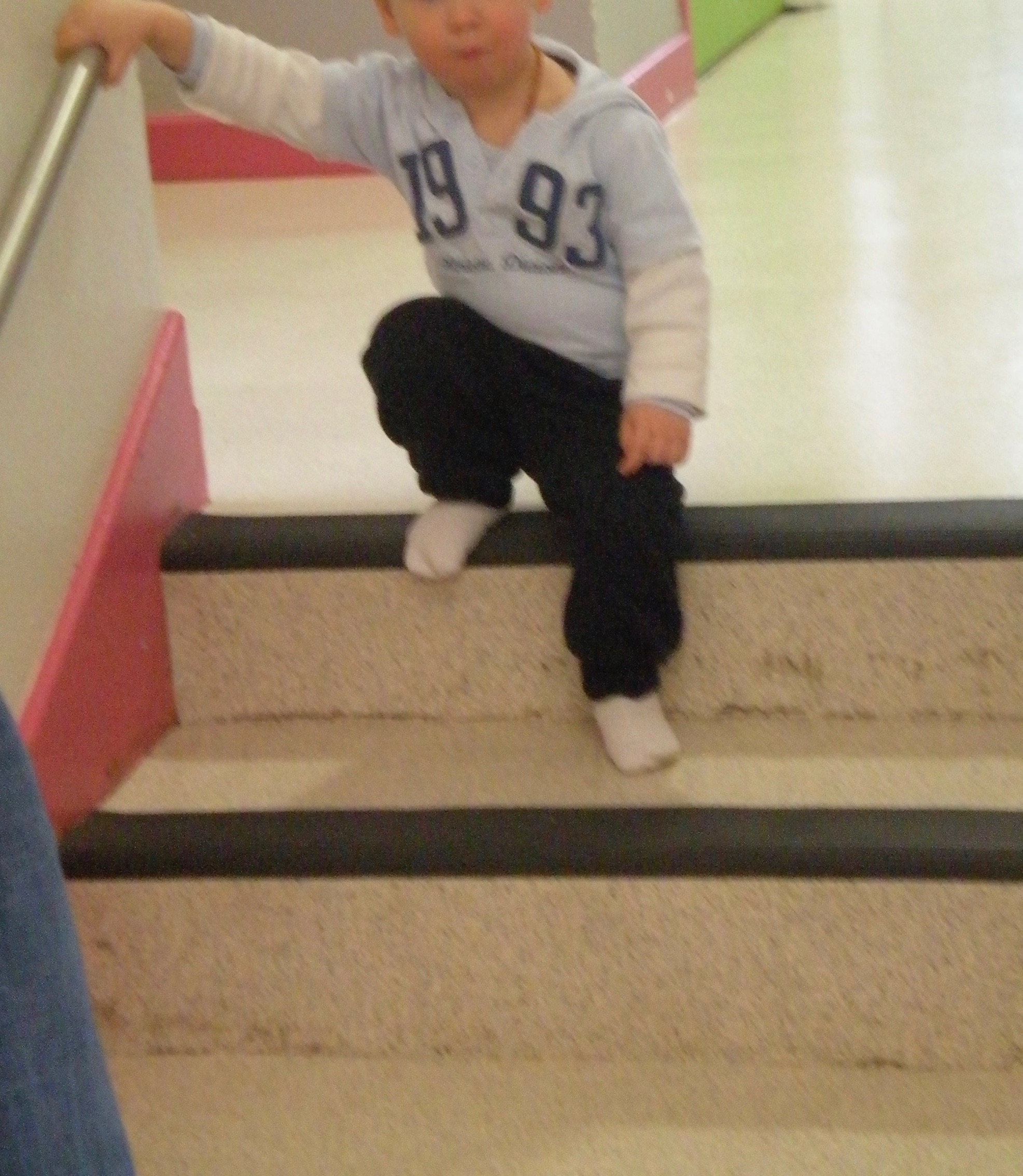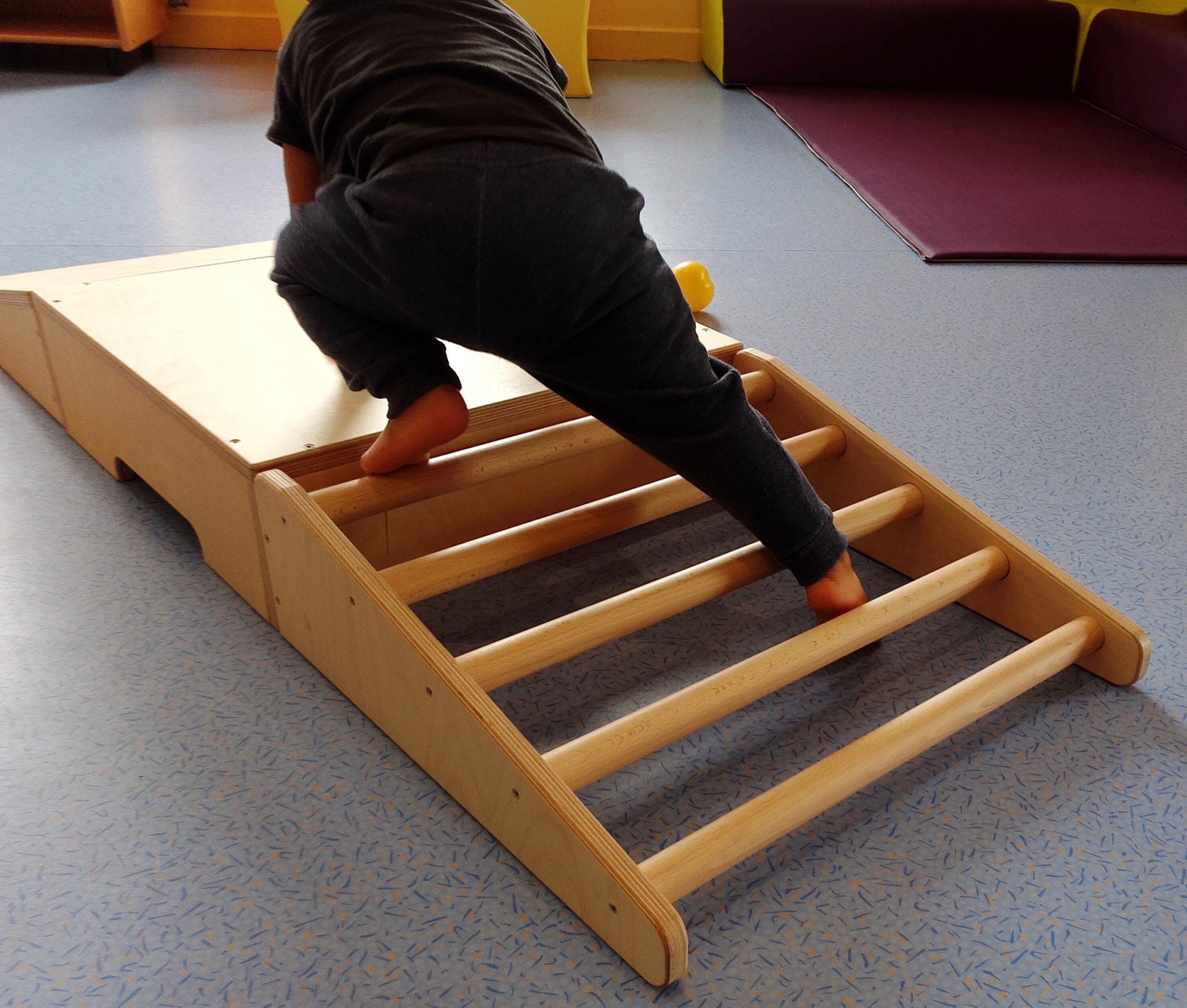Quelques marches dans la maison, dans la rue, dans un parc de jeu, une barrière en bas des escaliers placées sur la 4ème marche ( laissant ainsi libre les 3 premières marches pour s’exercer) sont autant d’occasions d’entraîner cette nouvelle compétence, sa persévérance, sa confiance en lui et en ses capacités.