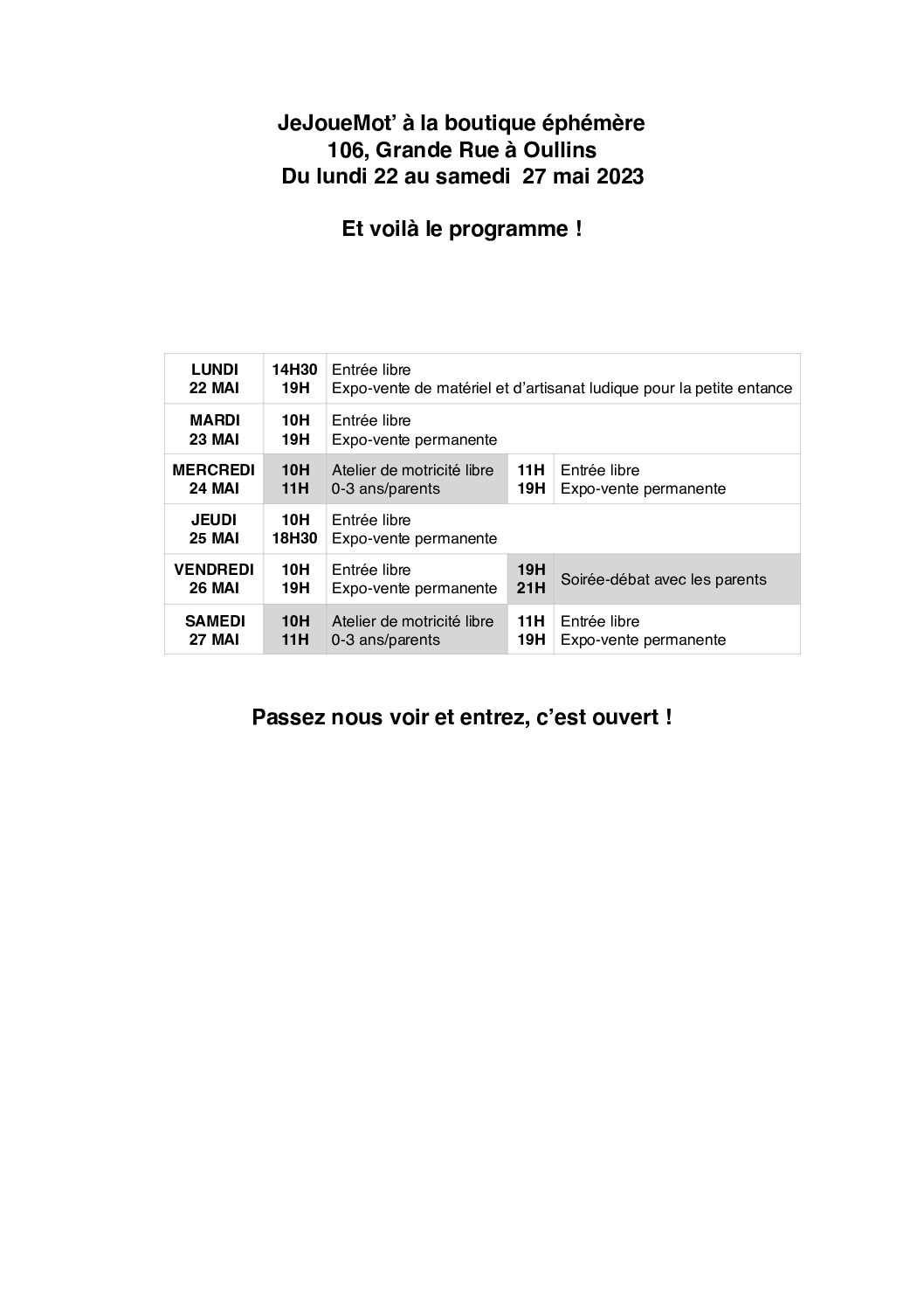 La boutique éphémère à Oullins par admin | Mai 18, 2023 | Blog, Événements | 0 commentaires Poster le commentaire Annuler la réponseVotre adresse e-mail ne sera pas publiée. Les champs obligatoires sont indiqués avec *Commentaire * Nom * E-mail * Site web Enregistrer mon nom, mon e-mail et mon site dans le navigateur pour mon prochain commentaire. Oui, ajoutez-moi à votre liste de diffusion.