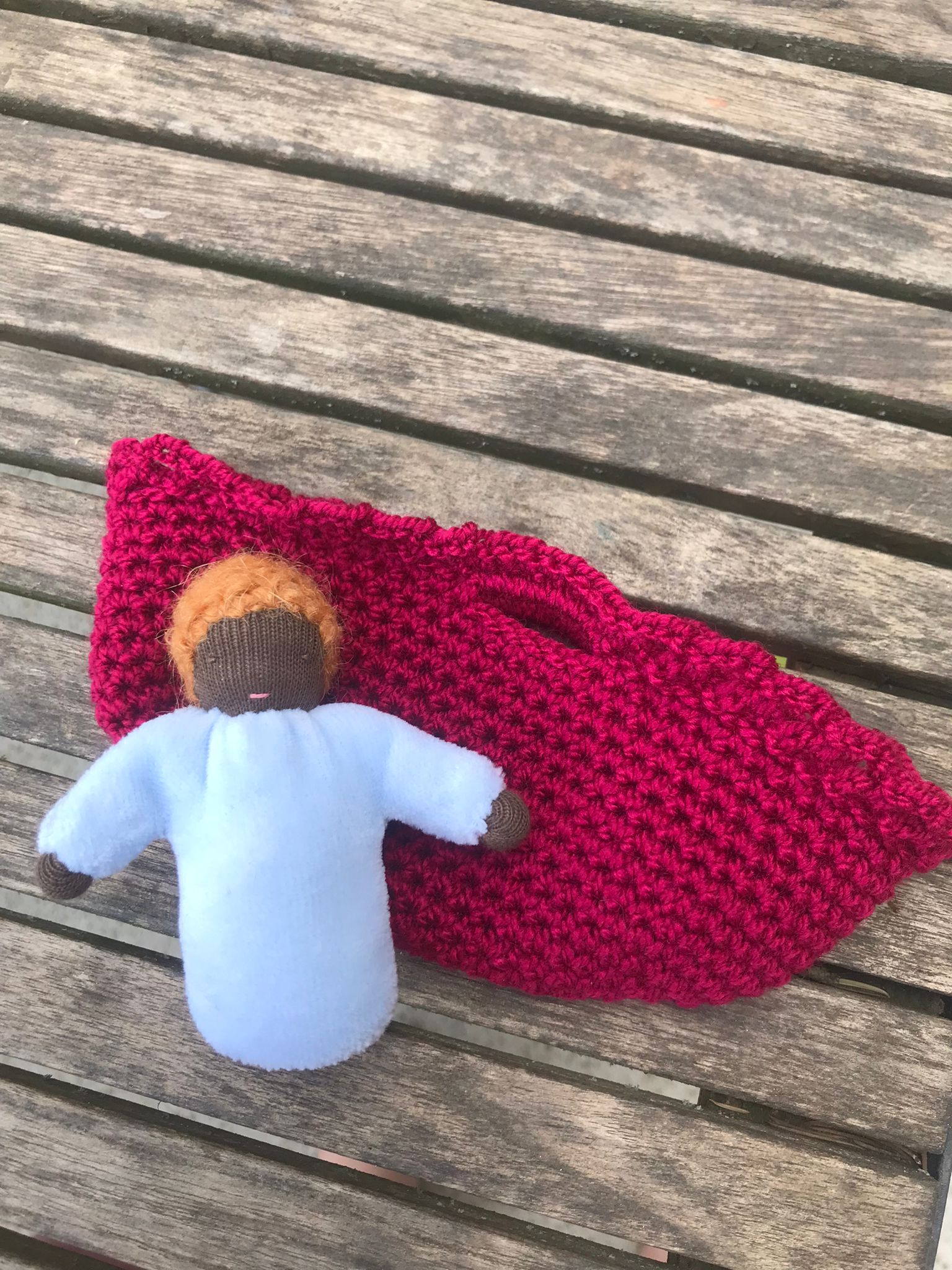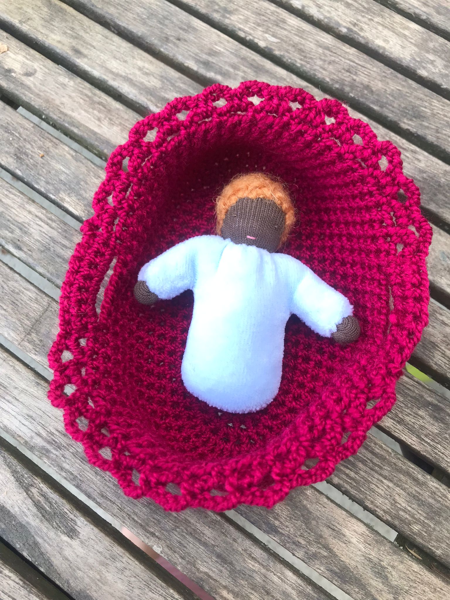 Couffin au crochet pour mini poupée. Tient dans le creux de la main