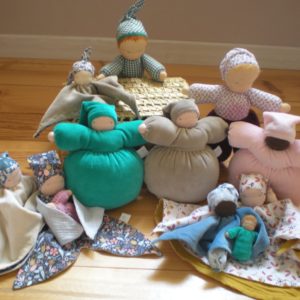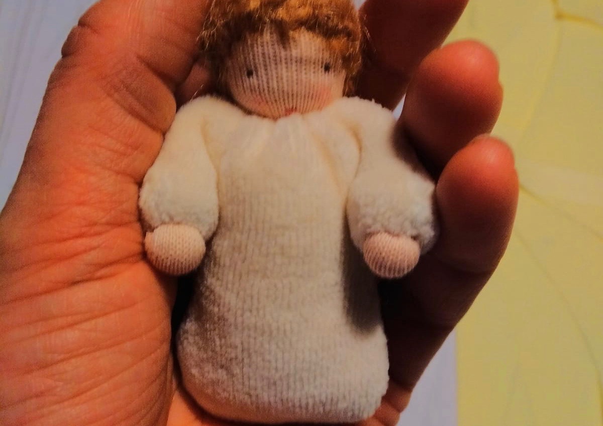 Une mini poupée inspirée de la pédagogie Waldorf. Confectionnée à la main, sa petite taille